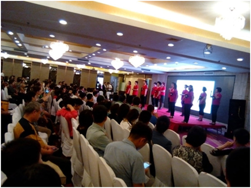 会议于下午2点准时召开,此时的现场已座无虚席。今天沈阳分公司有幸请到天福天美仕副总经理吴家男先生作为本次会议的主讲人。拥有21年的行业经验的吴总为家人们主讲了天美仕的价值愿景及他的职业发展历程。今天对于吴总来说也是特别难忘的一天,因为6月13日是他的结婚纪念日。会议现场气氛热烈,吴总的演讲多次被新老朋友的热情掌声所打断,集团强大的实力,拥有独特魅力的茶文化,移动互联网+商业模式优势,重复消费政策等等的优势共同成就了强大的天美仕事业。