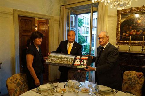 李金元董事长应邀参加意中基金会主席罗米蒂家宴,并向主席赠送天狮产品