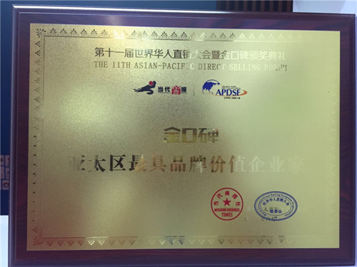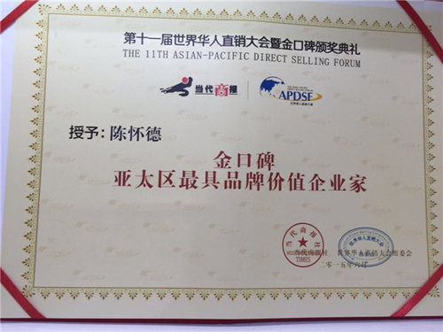 陈怀德先生荣获“金口碑亚太区最具品牌价值企业家”殊荣