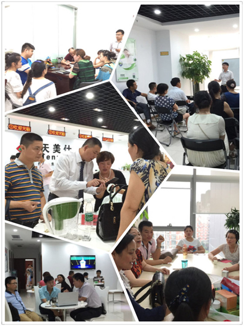 在王经理分享之后邀请了优秀的市场伙伴:曾庆平、张泷匀上台分享他们的成功经历以及在天美仕学到的知识与收获的感动。