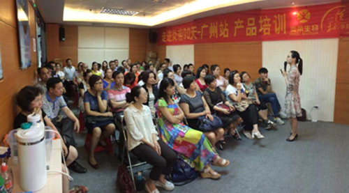 6月25日下午,由领袖学院主办的“走进炎帝90天——广东站”健康产品培训正式开讲。本次培训很荣幸的邀请到领袖学院讲师胡丹授课,会场座无虚席。健康讲师胡丹传授了大家应该怎样调养自己的身体,并现场对公司多种产品进行了演示,现场反响非常好。与会人员通过本次的培训,对公司的产品有了更深层次的了解,也提高了大家演示产品的能力。
