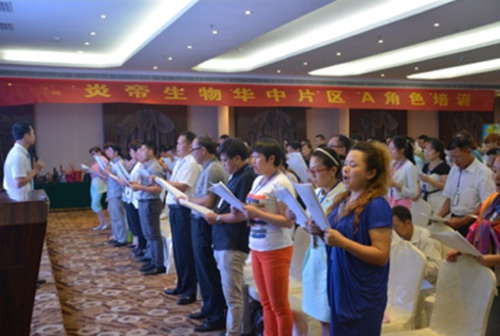 2015年6月18日至19日,炎帝生物华中片区A角色培训在邵阳四星级华泰国际大酒店拉开帷幕。此次培训荣幸地邀请到了炎帝生物中国区副总裁、领袖学院院长韩建柏先生,领袖学院魅力讲师叫思成女士出任讲师。共150名经销商参与了本次培训。培训中韩总对《进阶经销商成功宝典+体验活动“我无法”》进行详细深刻的讲解,在专业的学习和训练中,让经销商学习今后如何管理自己的团队,学院讲师叫思成对《七星阵法》进行全面讲解与分析,让各位伙伴轻松上手公司市场业务运作系统。随后韩总及叫思成讲师讲解了包括《沟通答疑》、《促成与跟进服务》,及《聚会》的详细内容。最后韩总的压轴课程《目标设定》为学员以后的道路指明了方向!
