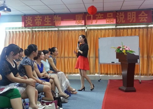 2015年6月28日下午在山西分公司举办“走进炎帝90天――产品培训”。会议在主持人幽默诙谐的语言中开始;由学院讲师文瑾主讲,主要从护肤和媒体两大板块进行宣讲与分享,以及新品O3活氧平衡机产品展示及示范,新老会员对产品神奇效果反映强烈;同时对炎帝事业和产品予以肯定,跃跃欲试。其次经销商对炎帝事业及使用产品效果进行分享,引起新老会员共鸣。