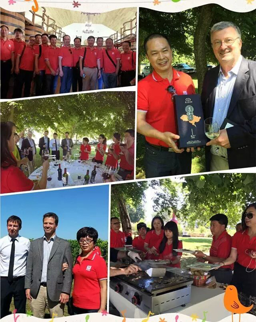 阔别苏达酒庄,道和筑梦团成员们来到道和酒业总经理侯智坚曾造访过的波尔多黑教皇酒庄。早已恭候多时的黑教皇堡主本纳德热情相迎,按当地最高礼仪,为远道而来的宾客升起了中华人民共和国国旗,还亲自带领大家走进酒庄的小城堡,逐一介绍酿造设备及工艺。在黑教皇酒庄专业人员的讲解下,筑梦团一行认真地学习了葡萄种植、酿造、收割、储藏、灌装等全部过程,纷纷感叹道:“原来还真不知道酿造一瓶上佳的好酒有这么多讲究和学问。”而黑教皇堡主本纳德更是拿出自己亲自种植的葡萄酿制而成的美酒请大家品评,并向大家介绍红酒礼仪及配餐知识。