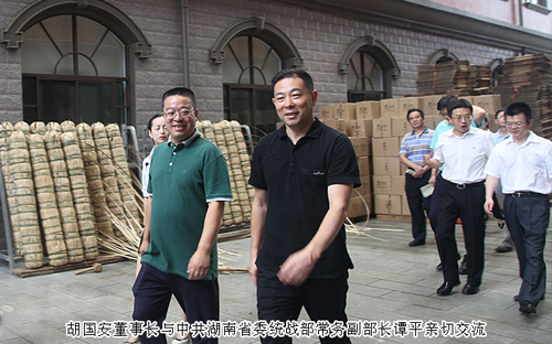 炽热家乡情,回报桑梓心。2015年7月9日—10日,湖南省工商联(总商会)副会长、湖南省光彩基金会副会长、绿之韵集团董事长胡国安陪同中共湖南省委常委、省委统战部部长李微微,中共益阳市委书记胡忠雄,中共湖南省委统战部常务副部长谭平等一行赴湖南益阳安化县江南镇黄石片区调研扶贫工作,并深入走访当地特色茶叶经济园区、企业考察指导。中共湖南省委统战部副厅级纪检员杨广林,湖南省住建厅副厅长高东山,湖南省交通运输厅副巡视员陈建强,湖南省水利厅纪检组长李金,湖南省农委副主任黄其萍,湖南省扶贫办副巡视员杨文辉,中共益阳市委常委、组织部部长、统战部部长何俊峰,中共益阳市委常委、市委秘书长孙达良,安化县委书记杨光鑫,安化县委副书记、县长熊哲文等陪同调研。