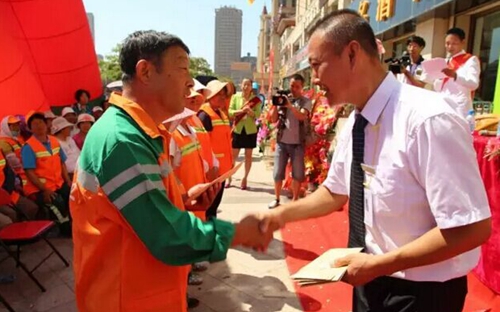 7月8日,在荟生海英庄河旗舰店开业仪式上,荟生义工站的全体慈善义工带头献爱心,踊跃捐款建立首支“荟生慈善基金”,启动了“荟生关爱”义工服务项目。该 项目旨在捐助家庭贫困的环卫工人,为弱势群体免费提供健康、保健、养生等方面的专业服务。在捐助现场,荟生海英庄河旗舰店董事长李志山将募集善款中的 5000元,发放给庄河市5位家境贫困的环卫工人,用于改善他们的生活条件。随后,荟生义工站还为到场的50余位环卫工人代表发放了一套慰问品,让环卫工 人真切地感受到社会的温暖。