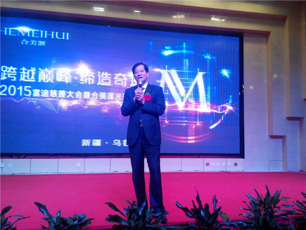 7月19日,“跨越巅峰•缔造传奇”2015慈善大会暨合美滙光雕盛典在新疆乌鲁木齐隆重举行。连续八届荣膺“中国十大慈善家”、中国扶贫开发协会副会长、全国工商联美容化妆品业商会副会长、民建中央对外联络部副部长、广东省第十二届人大代表、富佑集团董事局主席陈怀德先生,富迪健康科技有限公司营运总裁兼集团供应链副总裁、合美滙营运副总裁张菡女士,香港合美滙(国际)美容控股集团营销总裁王忠妮女士,长成国际商学院副院长翟学帅先生等合美滙和富迪公司高管,以及周培全先生、张茗婉夫妇、王铎淞先生、赵宋各先生等来自新疆各地的500多名经销商合作伙伴共同参与了本次盛典。