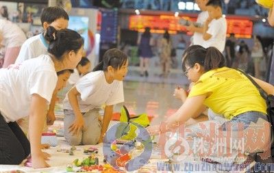 下午,40名小朋友带着自己的玩具、书本等物品,分成5组在神农太阳城3楼摆起了地摊。能不能挣到钱,直接关系到他们晚餐吃什么,所以小朋友们吆喝得都很卖力。