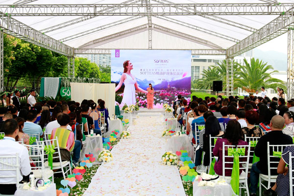 活动现场被鲜花、鲜果、绿地、甜点、落日余晖打造成一个令人心醉神迷的甜蜜王国。身着盛装的理想家人们从鲜花铺就的“SOFTEAS之路”款款走来,在SOFTEAS缤纷纯美的映衬下,上演了一场挥洒着青春与梦想的“SOFTEAS唯美之秀”。