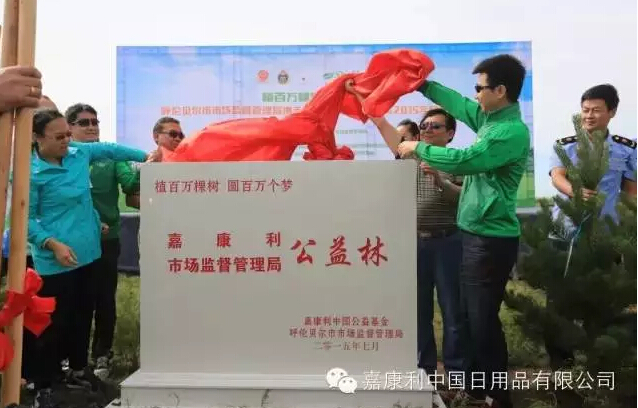 北京青少年发展基金会秘书长陈淑惠在捐赠仪式上表达了三个感谢:第一,代表首都人民感谢内蒙人民对北京的天蓝水清所做的贡献。第二,感谢嘉康利公司多年来对北京青少年发展基金会的支持和信任。第三,感谢嘉康利公司的环保人士,凝聚爱心,为呼伦贝尔缔造了一条美丽的绿化带。之后,陈淑惠秘书长代表北京市青基会分别向呼伦贝尔市市场监督管理局和嘉康利内蒙古分公司颁发了“绿色环保、先进集体”的荣誉牌匾。