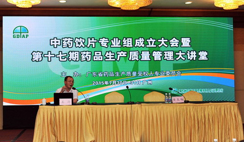 7月30日至31日,广东省药品生产质量受权人专业委员会在广州举办中药饮片专业组成立大会暨第十七期药品生产质量管理大讲堂,康美药业质量总监姜涛被聘任为中药饮片专业组组长,并在药品生产质量管理大讲堂上作了关于《中药饮片生产质量管理要求》的讲座。