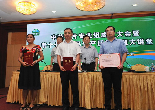 康美药业质量总监姜涛上台接受省中药饮片专业组组长聘书