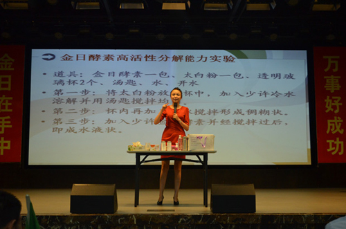 产品示范是每个店长都必须熟练掌握的业务技能。本期店长训金日教育部讲师刘元卉生动形象地跟店长们演示了酵素、金维他、钙咀嚼片、丝然卫生巾、金日活力杯等产品,为店长们更好地了解和讲解产品做了示范。