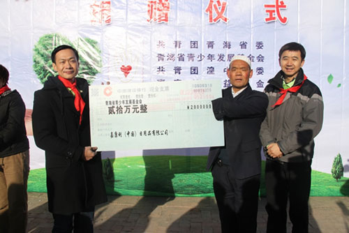 2012年嘉康利大中华区总裁黄海涛、公益基金主任李重华向马复兴递交捐赠支票