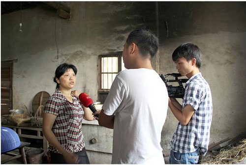帮扶学生胡佳丽母亲含泪接受湖南经视频道记者的采访