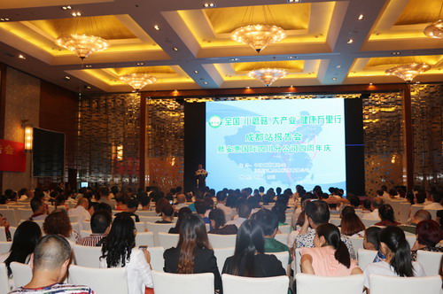 8月16日,全国“小蘑菇 大产业”健康万里行成都站报告会暨安惠四川分公司四周年庆在成都首座万丽酒店隆重举行。来自四川、贵州、重庆等地区的500多名专家、学者及安惠经销商参加了本次活动。