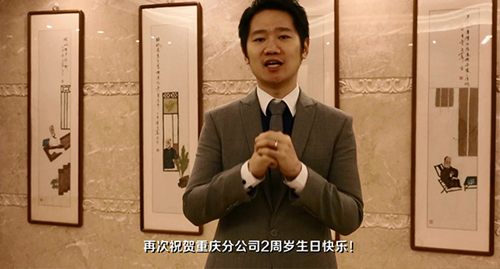 金日集团总裁李冠华视频祝贺重庆分公司2周年生日快乐!