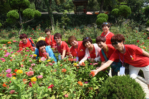 伙伴们在花丛中开心合影!