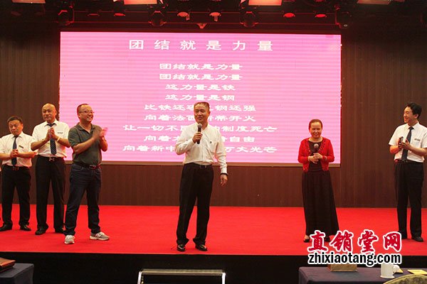 公司高管上台领唱《团结就是力量》