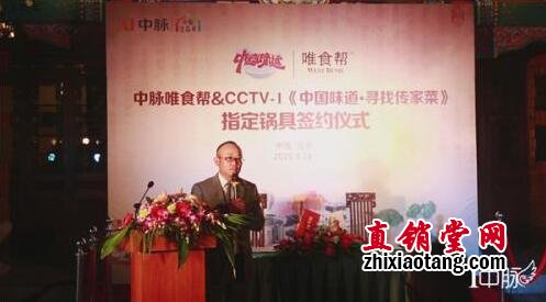 中脉中国区总裁李达兵代表中脉致辞。李总表示:“此次唯食帮签约央视《中国味道•寻找传家菜》并成为指定锅具,是唯食帮在成为2015年意大利米兰世博会中国馆指定厨具产品之后,再一次闪耀在万众瞩目的品牌舞台。古色古香的四合院内,古典与现代的融合,饕餮美食和精品锅具的相得益彰,必将酿造出中国的“好味道”。