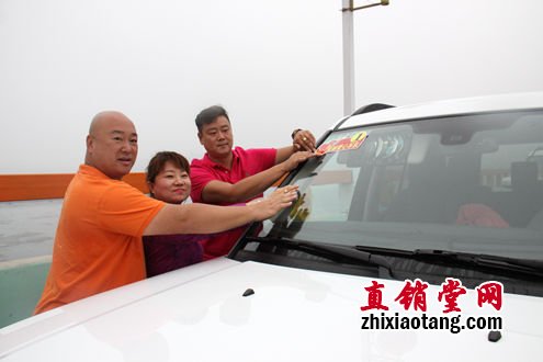 陈以勳副理事长与寰宇大使董波、孙旭伉俪共同为爱心车队贴上车标