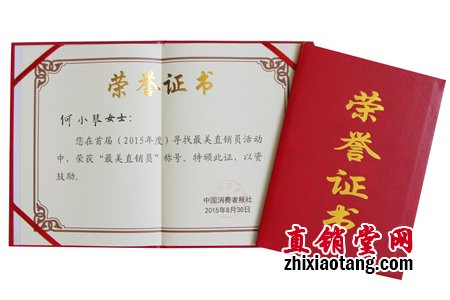 “最美直销员”新时代人何小琴荣誉证书