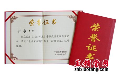“最美直销员”新时代人余春荣誉证书