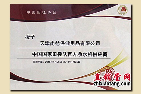 2015年,尚赫品牌被中国田径协会授予“中国国家田径队官方净水机供应商”荣誉称号,以尚赫I型净水机的优质水源,呵护运动健将的健康体魄,为中国体育事业贡献品牌力量,也为尚赫品牌注入了全新的文化元素。