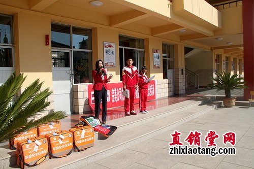 公司员工向学生介绍安全包使用方法