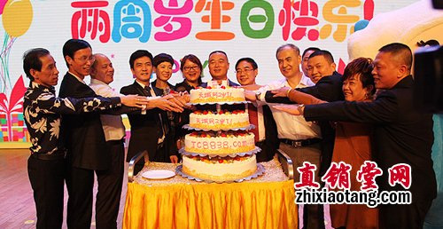 最后,伴随着欢快的生日祝福歌,天城网两周年定制蛋糕缓缓推上舞台中心。大会主持人文翰、邵亦冉邀请领导嘉宾、集团高管、云商精英和事业伙伴等走上舞台,分享节日蛋糕,许下美好心愿,共同庆贺天城网两周年快乐!