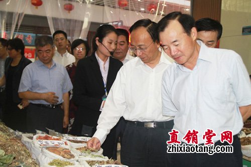 何建中副主任(左一)听取市场介绍