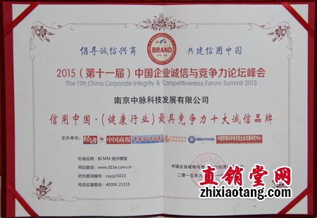 中脉荣获“健康行业最具竞争力十大诚信品牌”