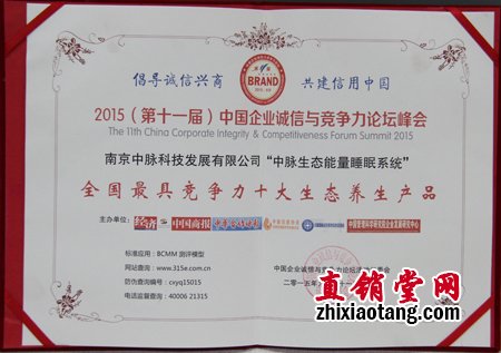 9月20日-21日,“第十一届中国企业诚信与竞争力论坛暨首届中国互联网金融创新发展峰会”在北京人民大会堂隆重召开。中脉科技受邀参会。为表彰中脉推动中国健康行业发展的突出贡献和诚信经营管理的优异表现,论坛组委会授予中脉“信用中国•健康行业最具竞争力十大诚信品牌”荣誉称号。与此同时,中脉旗下产品中脉生态能量睡眠系统也凭借卓越的品质和生态健康的理念脱颖而出,获颁“全国最具竞争力十大生态养生产品”殊荣。