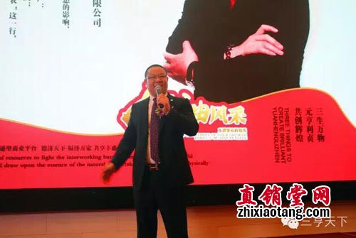 浙江三亨生物科技有限公司董事长龚金夫先生上台发表重要讲话。他说三亨是德上的销售窗口,将利用其地域优势和先进的商业模式为事业伙伴们打造互通型商业平台,表示三亨、德上强强联手,对联合拿牌充满信心。