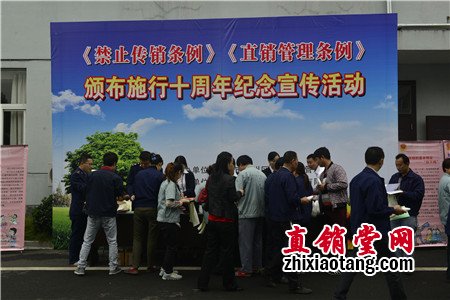 在活动现场,三生党支部组织党员志愿者通过现场宣讲、宣传册发放、疑问解答等形式为参与者普及相关为的法律知识,现场还派发了小礼品。 2015年,正值《禁止传销条例》和《直销管理条例》颁布施行十周年之际,各地针对《禁止传销条例》和《直销管理条例》两个条例的宣传活动正如火如荼地展开,三生秉承着“永续、稳健、规范”的经营理念,积极响应政府号召,投入到直销立法10周年系列活动。