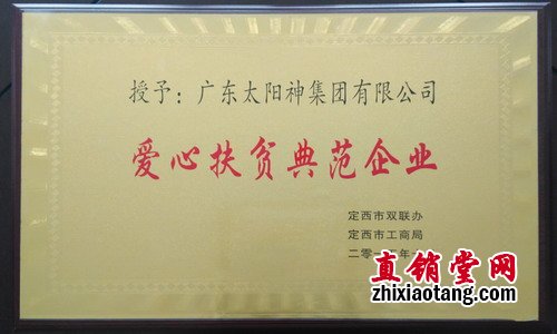 太阳神公司获“爱心扶贫典范企业”荣誉称号