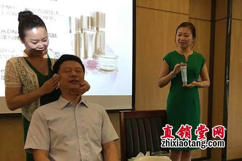 教育部优秀讲师方月勤则现场跟学员们演示了如何用正确的手法进行肌肤护理。她强调,护肤要掌握正确的步骤,否则会适得其反。