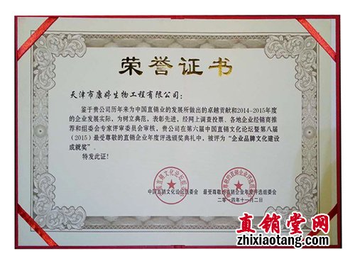 康婷公司受邀参加了此次大会。康婷凭借19年来孜孜不倦地寻求精益求精的产品质量和开拓创新的商品研制理念,荣获“企业品牌文化建设成就奖”。公司董事长刘小兵先生荣膺“2015最受尊敬的直销总裁”奖,刘小兵先生作为公司的领军人,率领公司全体职工将企业发展成为一家集研发、生产、销售为一体的现代化企业,立志要做出属于中国人的百年护肤品牌,为研究出“创造需求的产品”而努力拼搏。同时,他弘扬“诚实守信,求质创新”的企业文化,将质量作为公司的生命,创新作为公司的血脉,带领所有康婷人积极回馈社会,担当企业社会责任的践行者。