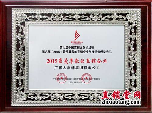太阳神公司再获“最受尊敬直销企业”荣誉称号
