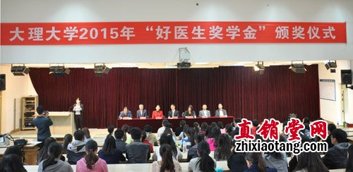 2015年10月30日上午,大理大学2015年“好医生奖学金”颁奖典礼在大理大学报告厅隆重举行。大理大学纪委书记杨建平、好医生药业集团人力资源部副总监陈宇,以及获奖学生代表向舒先后在颁奖典礼上发言。大理大学相关校领导及院系领导一起为获奖的学生颁奖并合影留念。