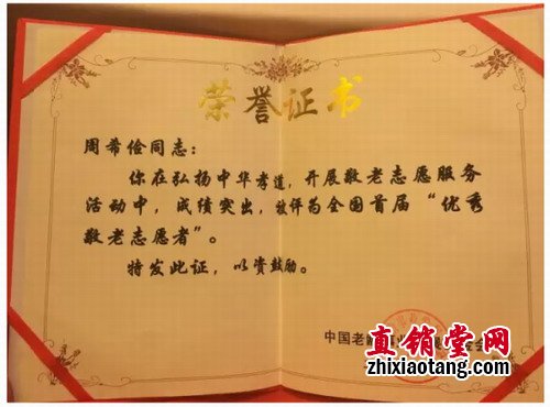 全球老龄化危机带来弘扬中国传统孝道文化的新土壤,鉴于中脉健康产业集团董事局主席周希俭为中国老龄公益事业所做出的突出贡献,中国老龄事业发展基金会、中国国际重阳联欢节组委会授予周希俭“全国首届敬老优秀志愿者”荣誉称号。