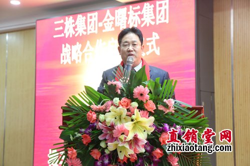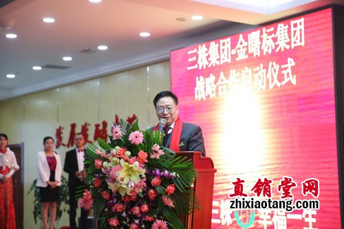 金曙标集团郭金彪先生致辞表示与三株集团的战略合作,会让金曙标集团有着巨大的飞跃:会销与直销的结合、产品与渠道的结合及新型商业模式将优化现有的市场经营模式,此次战略合作将共同成就双方,必定会创造奇迹。
