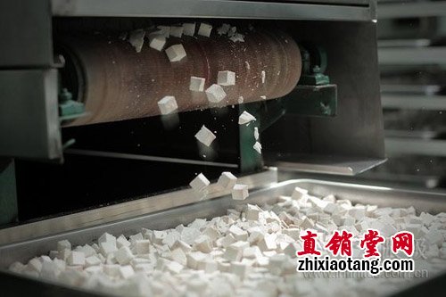 经过手工两次去皮后,工人会将我们经过机器裁切,变成我们平时见到的白色块状茯苓。