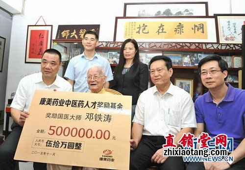 广州中医药大学党委书记黄斌,广州中医药大学第一附属医院院长冼绍祥,康美药业董事长、总经理马兴田,副董事长、常务副总经理许冬瑾,副总经理李建华等领导专程到“国医大师”邓铁涛教授家中登门拜访,并颁发50万元个人奖励基金。