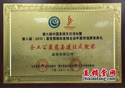 近日,第八届(2015)最受尊敬的直销企业年度评选颁奖典礼暨第六届中国直销文化论坛在万达嘉华酒店圆满落下帷幕。来自政府部门、直销企业、市场精英、专家媒体在内共计1000多人参加了此次会议。葆婴公司凭借多年来在“爱与责任”理念指引下广泛开展、参与多种类型公益慈善活动,被组委会授予“企业公益慈善建设成就奖”殊荣。