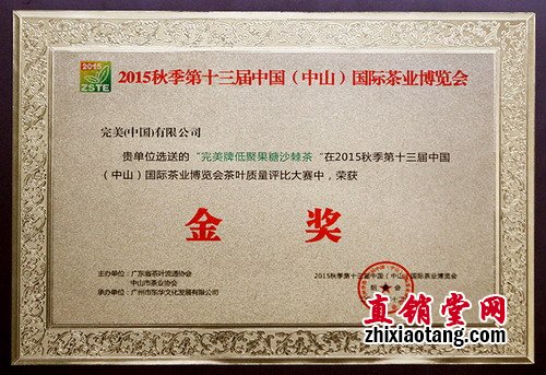 近年来,茶叶中的营养成分和药理作用不断被人们发现,其保健功能得到肯定。完美牌低聚果糖沙棘茶2009年荣获中山市科技进步奖三等奖;2011年,荣获由比利时布鲁塞尔国际风味暨品质评鉴所(ITQI)颁发的“顶级美味奖章”双星珍味奖。完美牌低聚果糖沙棘茶不仅是一种很好的健康饮品,而且具有调节肠道菌群的保健功能。