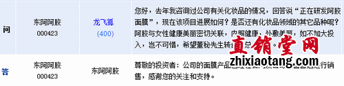 东阿阿胶(000423)周二在全景网互动平台上表示,公司的面膜产品已经在官网及公司的直营店进行销售。