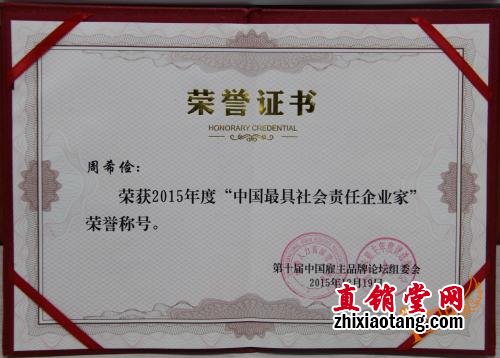 2015年12月19日,第十届中国雇主品牌论坛在北京隆重举办,中脉科技获颁“2015年度中国最佳雇主”殊荣,中脉健康产业集团董事局主席周希俭荣膺了“2015年度中国最具社会责任企业家”荣誉称号。