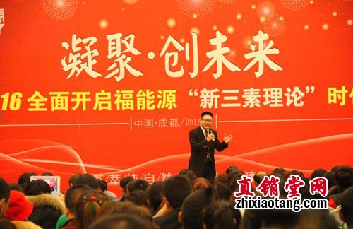 2015年12月19日晚上,福能源生物科技有限公司在成都加州花园酒店召开“新三素理论”时代说明会。公司领导、福润系统优秀领导人及经销商伙伴约500人出席会议!
