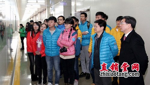 在扬州完美总经理潘联顺的带领下,大学生代表们参观公司的生产车间